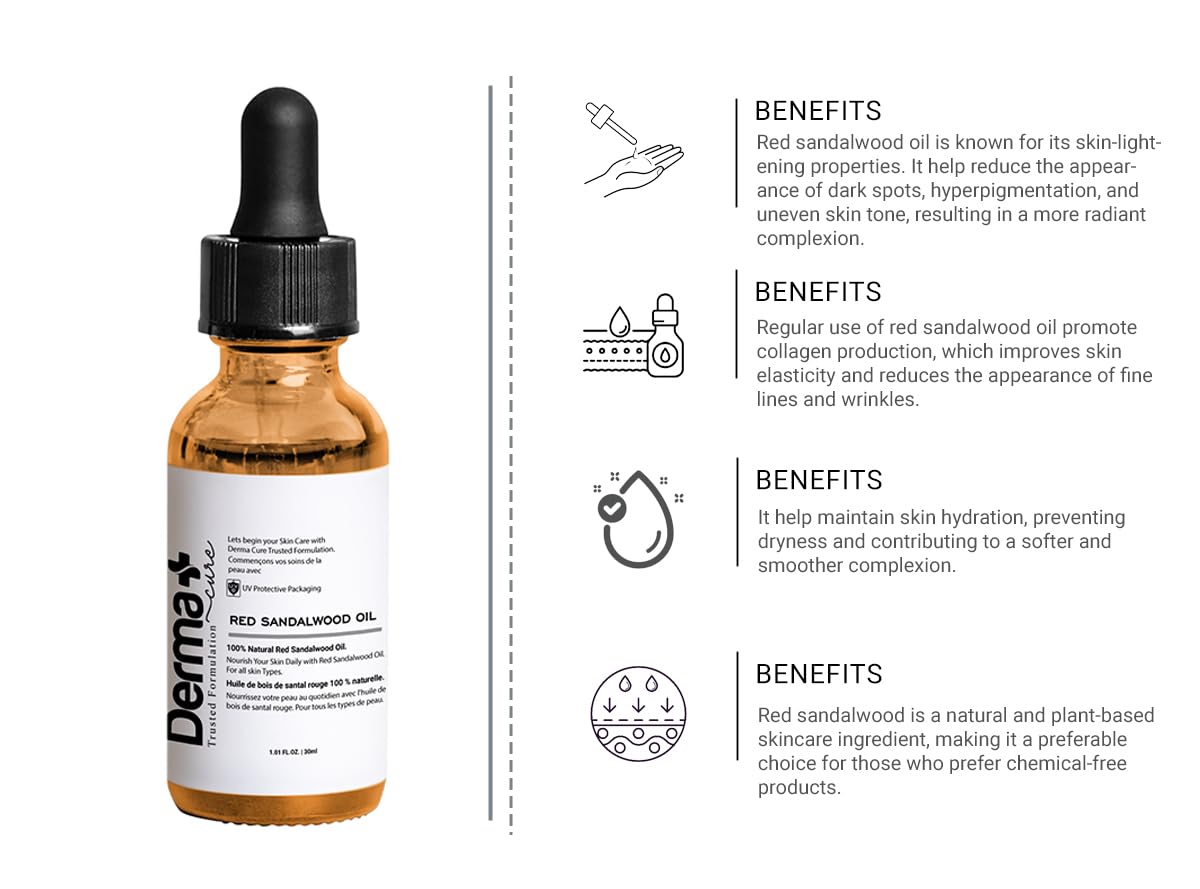 Experience the pure goodness of 100% Natural Red Sandalwood Oil—your go-to for radiant skin and healthy hair!