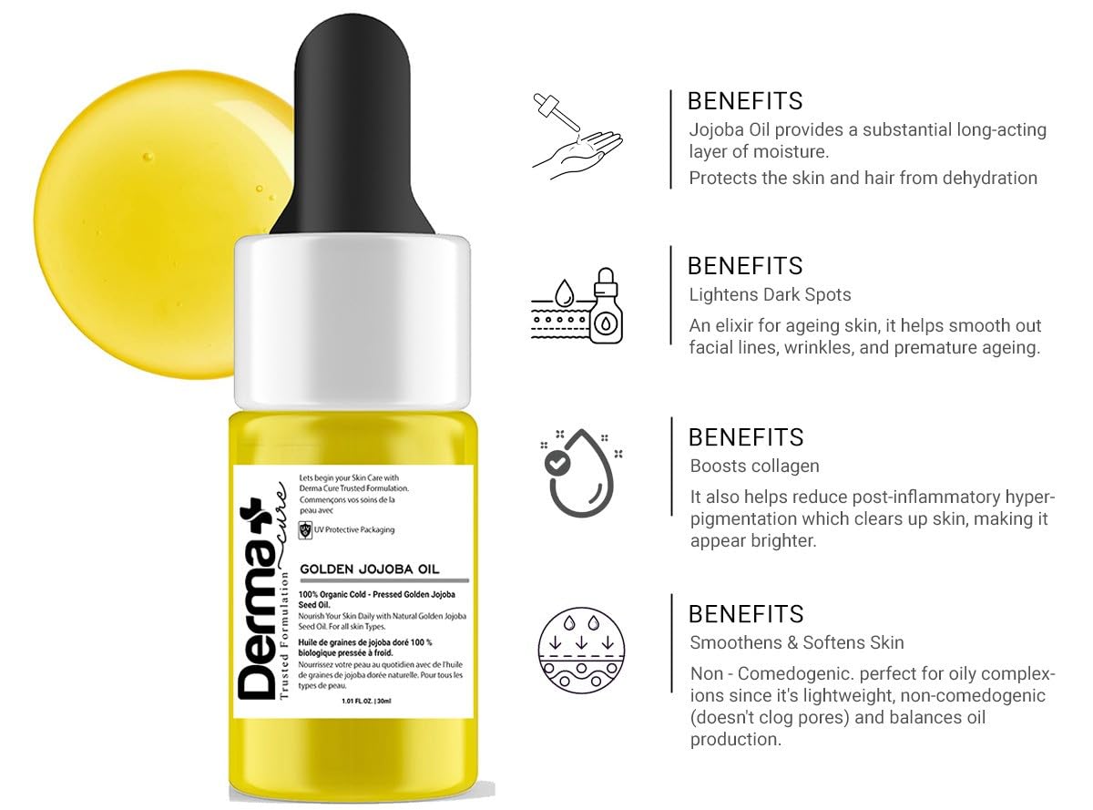 Experience the pure goodness of 100% Organic Cold-Pressed Golden Jojoba Oil—your all-in-one natural beauty solution!